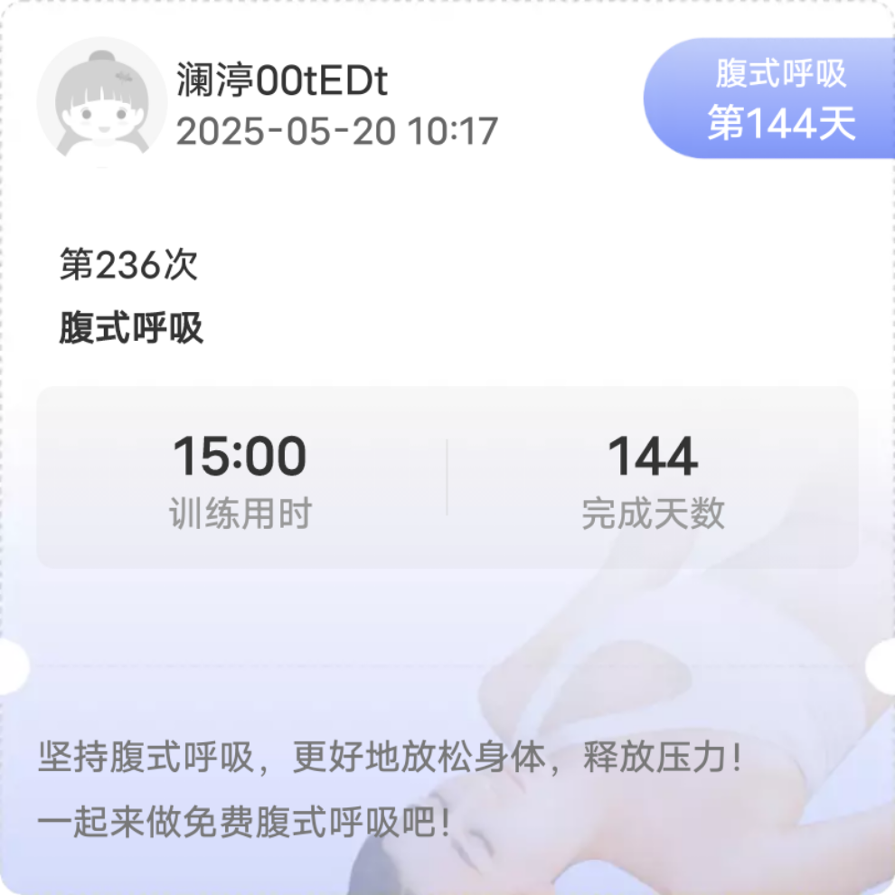 #腹式呼吸打卡第144天# 坚持腹式呼吸,更好地放松身体,释放压力!