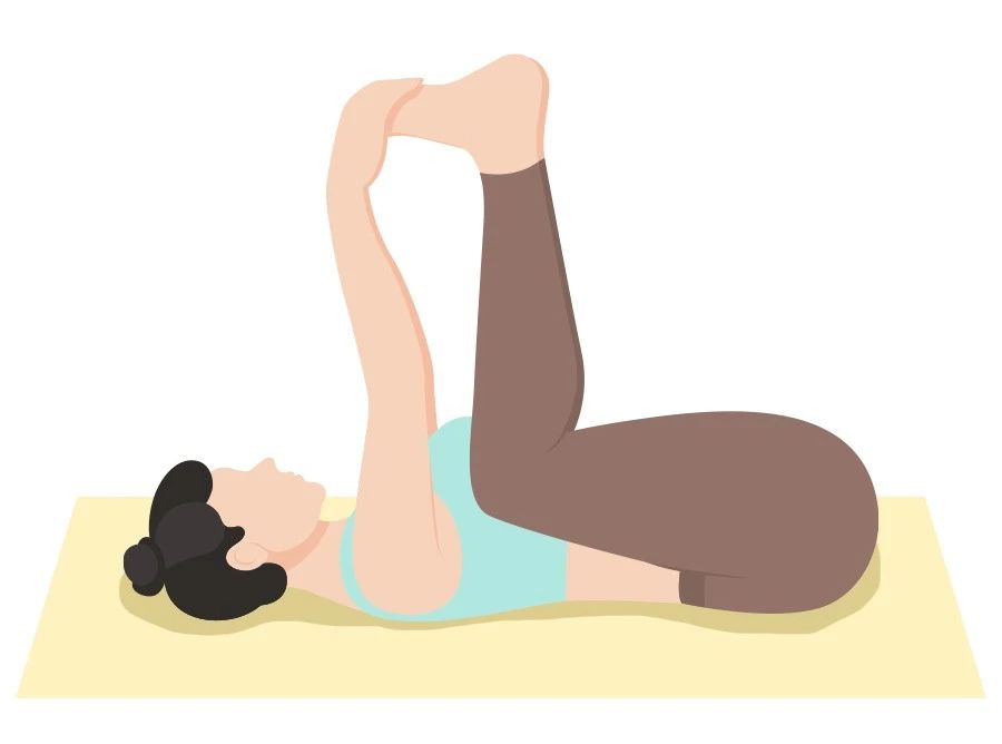 婴儿式拉伸:平躺,最大范围屈髋,手掌抓住脚掌外侧,膝盖缓慢下沉。这个动作可以很好的拉伸到盆底肌肉,并且还能改善骨盆区域的血液循环,帮助盆底肌进一步放松。