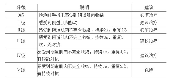 可以看到,盆底肌力分成0-5级六个级别。其中0级为最弱,5级为最佳。