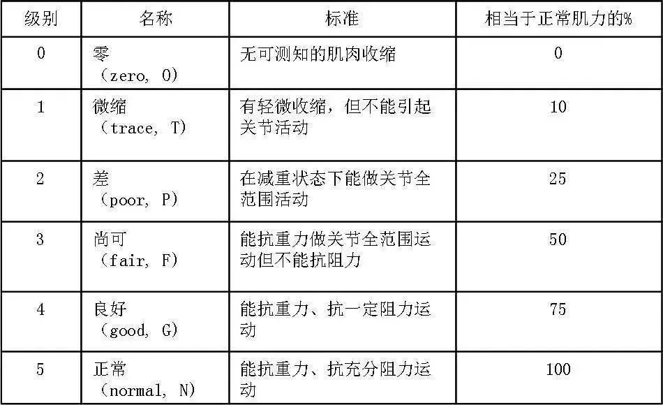 那0级会有什么后果呢?可以参照一下MMT肌力分级(见下表),0级就相关于正常肌力的0%,此时盆底松弛无力,如置之不理,易患盆底功能障碍。