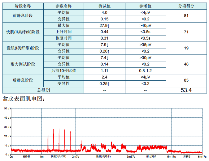 首先要知道盆底肌分为两类。有收缩较慢、耐力强的I类肌纤维,即慢肌,也有收缩速度快、易疲劳的 II类肌纤维,称之为快肌纤维。因此要通过评估报告看到的是I类肌纤维 II类肌纤维的肌力,肌肉的疲劳度,快慢肌的协调性,盆底肌的基础张力以及参与度,而且在评估的时候,应该注意盆底的浅层和深层的肌肉都要进行评估。